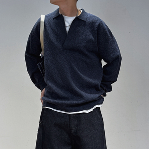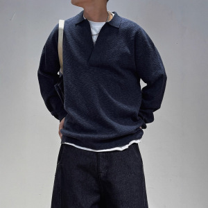高级感V领针织衫套头毛衣2025秋季新款翻领保暖男士POLO长袖打底