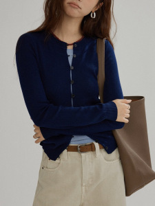 Joli Chiose羊毛假两件设计感针织毛衣女秋季修身显瘦小众上衣