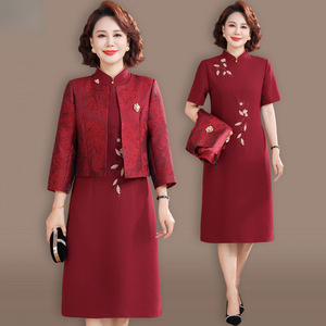 十一喜婆婆婚宴高端婚礼服套装两件套中年妈妈秋装连衣裙喜庆服装