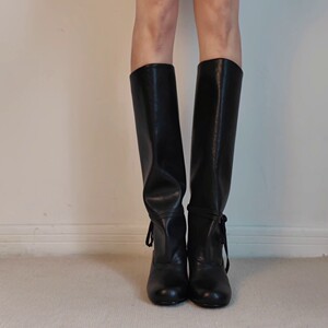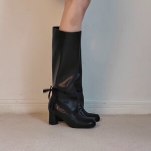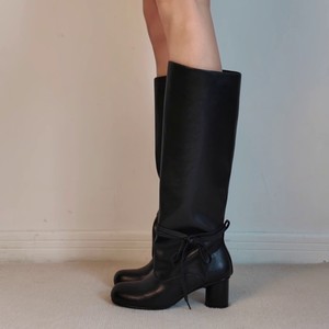 羊皮版~2025新款法式复古风简约圆头粗跟高筒靴女长靴骑士靴单靴
