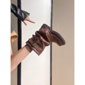 美拉德棕色堆堆短靴女2025新款夏季厚底马丁靴女款靴子圆头裤管靴