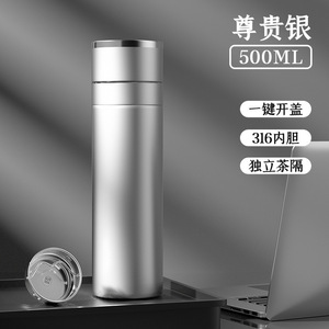 新款一键速开车载杯316不锈钢保温杯茶水分离杯便携商务泡茶杯
