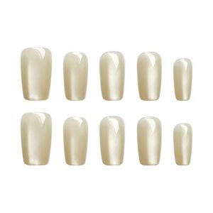 莫兰迪米色猫眼高级质感气质少女风御姐风显白美甲短款30-T穿戴甲