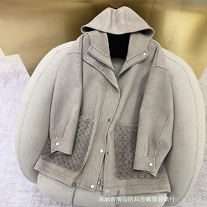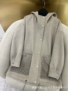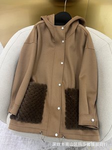 高级感25秋冬新款双面羊绒羊毛老钱风口袋水貂宽松连帽中长款大衣