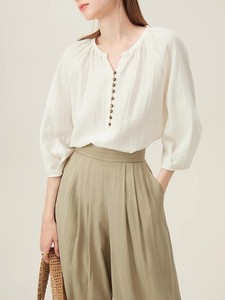 范思蓝恩法式亚麻衬衫女夏七分袖宽松慵懒风极简气质通勤上衣2211