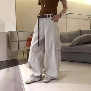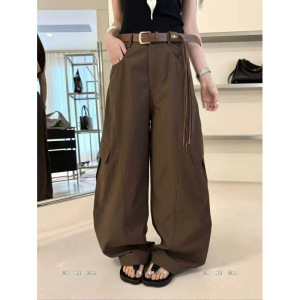 韩系复古时尚弯刀显瘦高级阔腿裤女夏款文艺范慵懒宽松洋气遮胯潮