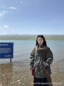 美式复古军绿色工装外套女秋季新款慵懒宽松水洗做旧穿搭休闲上衣