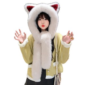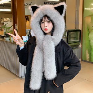 可爱狐狸耳朵毛绒帽子围巾手套一体女冬季护耳保暖帽2025新款冬季