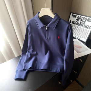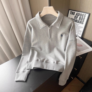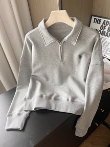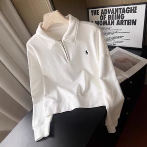 25秋拉夫同款刺绣小马半拉链翻领卫衣 女士休闲百搭宽松卫衣