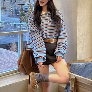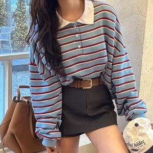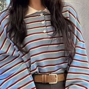 复古长袖条纹恤女2025春秋季新款韩系休闲小众设计感衫螺纹
