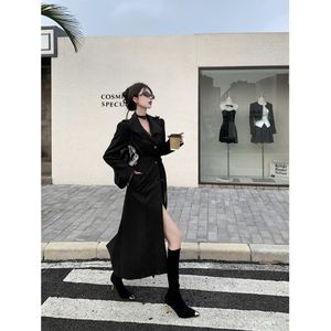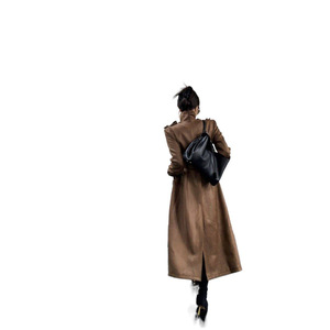 2025秋冬新款时尚高级感立领宽松长款皮衣系带宽松绑带风衣外套女