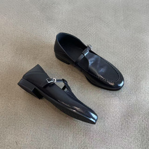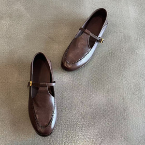 打版中~英伦复古圆头金属扣乐福鞋女通勤百搭真皮平底小皮鞋单鞋