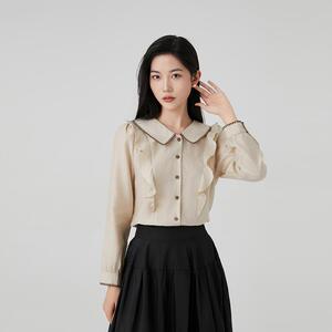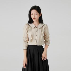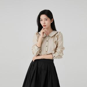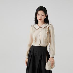 法式复古翻领衬衫女秋季2025新款撞色长袖衬衣设计感小众别致上衣