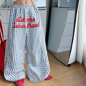 女童2025秋季新款时髦印花字母上衣休闲格子宽松阔腿裤两件套潮