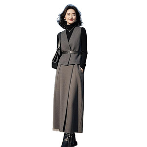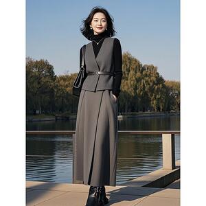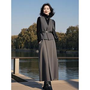 深圳南油气质女神范高端女装灰色马甲打底衫半身裙套装秋冬高级感