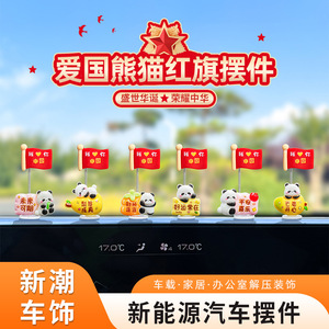 汽车摆件红旗熊猫国旗摆件车载中控台摆件电动车办公桌显示屏饰品
