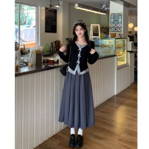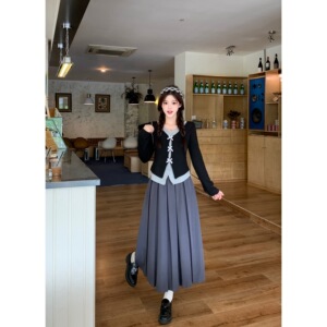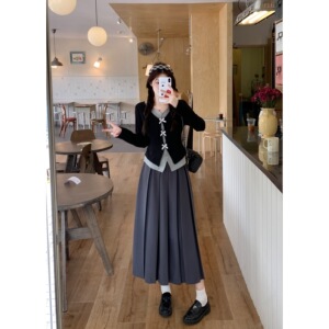 实拍2025秋季胖mm大码假两件上衣高腰百褶半身裙套装80429+80330