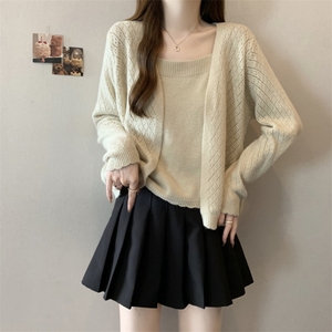 杏色背心+开衫【今年流行漂亮/超洋气欧货小衫/设计感小众/法式别致绝美/遮肚子藏肉/超好看/温柔风】
