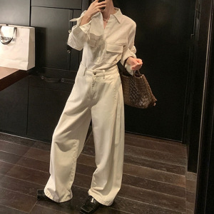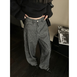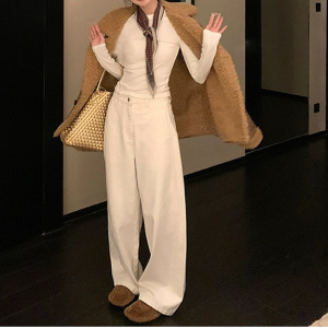 ZHOYUE老钱磨毛白色牛仔裤女秋季高腰直筒阔腿裤宽松长裤拖地裤子