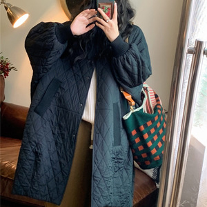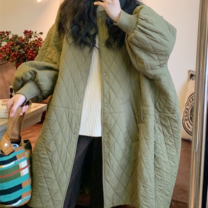 卡其色大码宽松外套女年秋冬季圆领轻又暖廓形中长款风衣棉衣