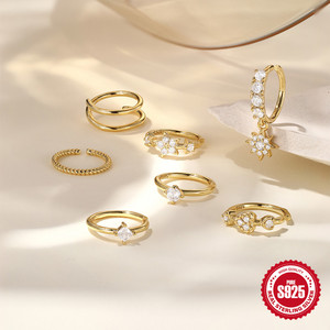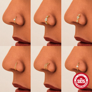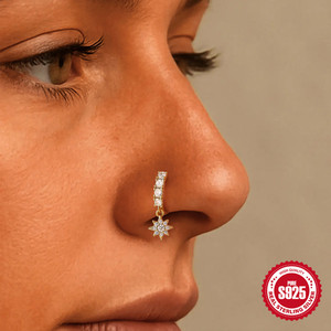 S925纯银爱心五角星镶钻鼻环穿刺饰品欧美热销个性张扬鼻圈鼻环女