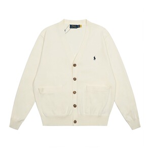 跨境外贸拉夫纯色V领休闲基础百搭软糯平纹针织开衫外套男女同款