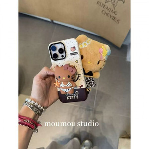 黑皮比基尼猫咪磁吸壳+波点比基尼棕凯蒂磁吸支架