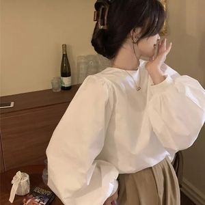 2025法式灯笼袖衬衫女秋设计感宽松减龄百搭圆领衬衣泡泡长袖上衣