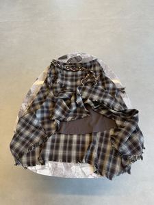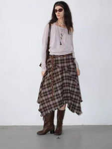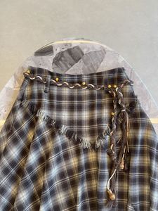 015游牧风葫芦腰绳不规则毛边格纹a字半身裙