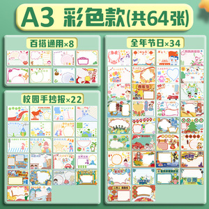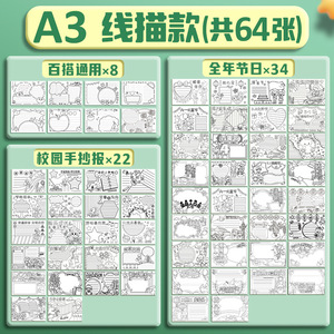 创意小学生手抄报模板大全a3专用纸儿童小报画画半成品板报手绘稿
