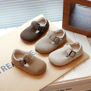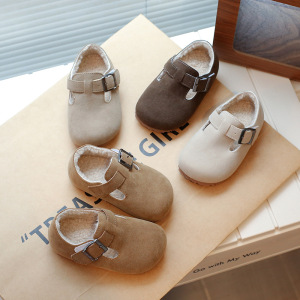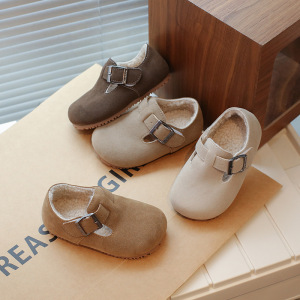 女童勃肯鞋加绒儿童皮鞋2025秋冬季新款女孩二棉鞋秋冬毛毛豆豆鞋