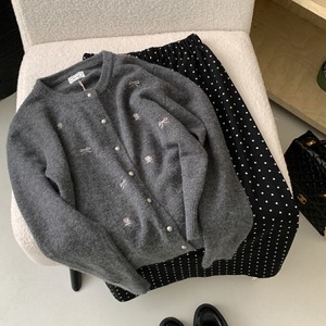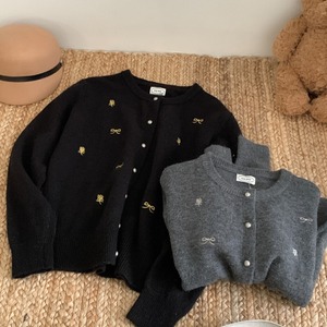高级灰蝴蝶结刺绣针织外套女2025早秋新款宽松显瘦软糯针织毛衣女