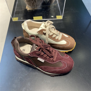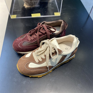 蝶澳复古撞色拼接运动德训鞋女2025新款轻便增高显脚小时尚休闲鞋