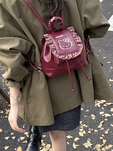 韩版洋气褶皱花边包包女2025新款时尚ins少女背包百搭质感双肩包