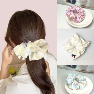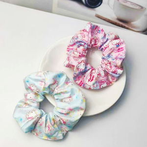 新款甜美风猫咪印花大肠发圈韩系少女高马尾丸子头发绳高弹力发饰
