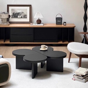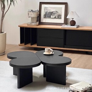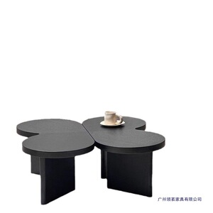 茶几轻奢现代法式简约黑色小户型实木异形创意云朵茶桌客厅家用
