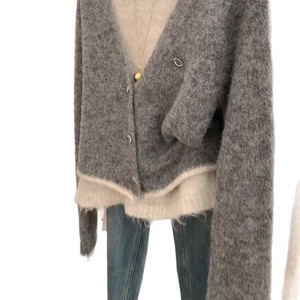 韩系慵懒风灰色假两件针织开衫毛衣女秋冬小众高级感超好看上衣潮