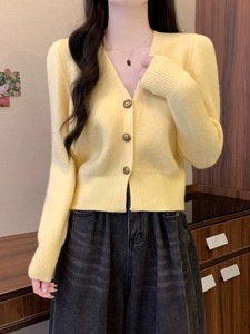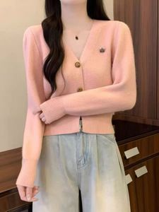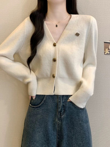 小香风V领收腰针织开衫女2025秋冬新款设计感软糯纯色毛衣外套潮