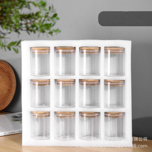 12件套玻璃竹盖玻璃罐珍珠棉套装佐料干果收纳盒高硼硅密封储物罐