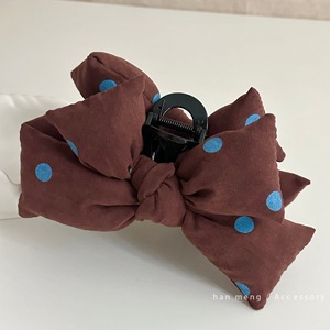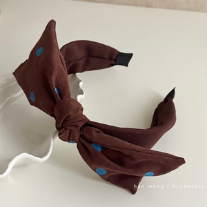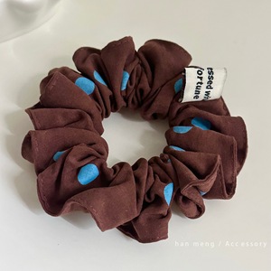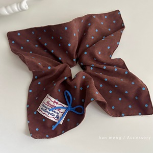 秋冬新款韩系复古蓝波点咖色方巾大肠发圈质感后脑勺扎发头绳发饰