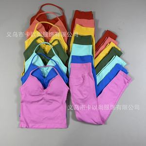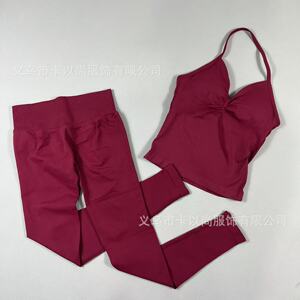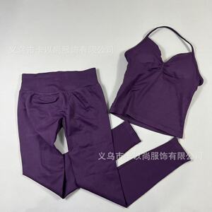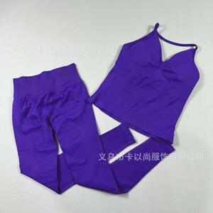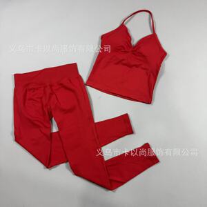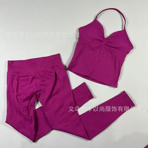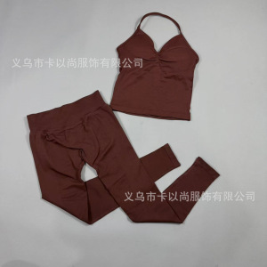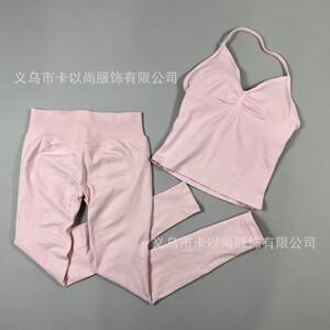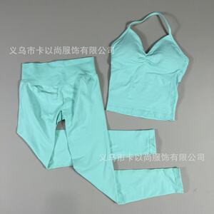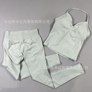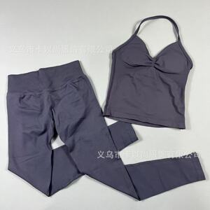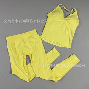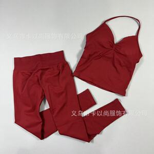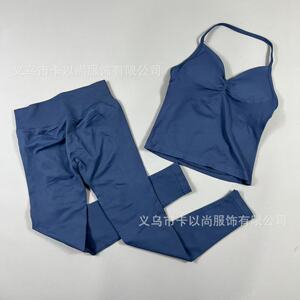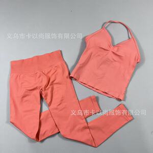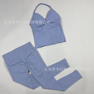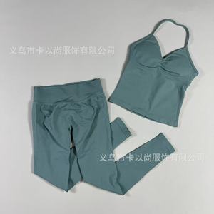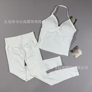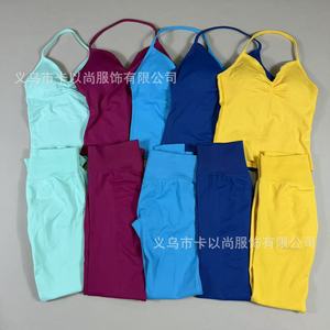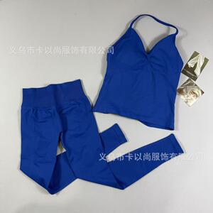 速卖通运动背心套装挂脖紧身健身服运动跑步收腰套装女DFYNE同款