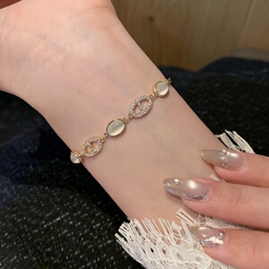 镶钻椭圆猫眼石猪鼻子手链时尚精致气质百搭手环轻奢高级感手饰女