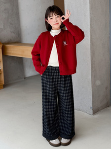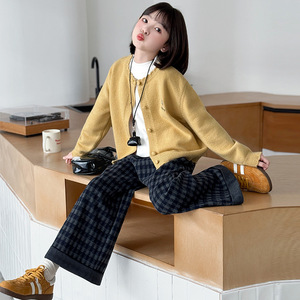 女童毛衣套装春秋款2025新款儿童打底衫中大童秋季格子裤三件套潮