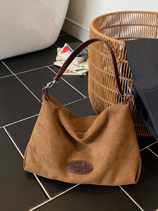 松弛感大容量麂皮绒包包女2025新款百搭斜挎包秋冬复古单肩腋下包