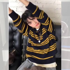 2025秋季新款撞色条纹针织衫奶fufu慵懒风上衣高级感超好看毛衣女