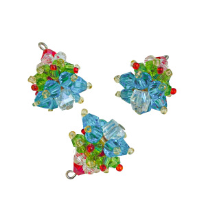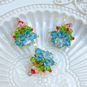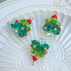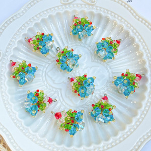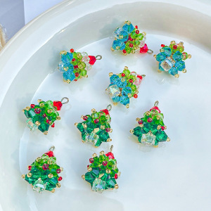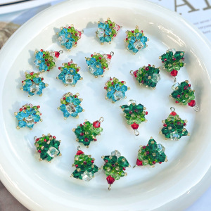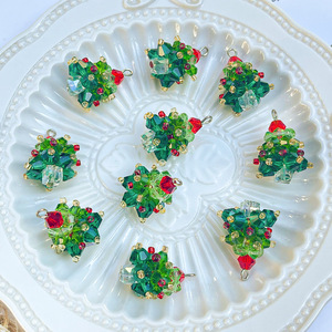 圣诞节日氛围手工编织水晶圣诞树吊坠耳饰项链吊坠手机链挂件材料