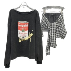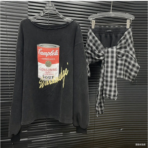 2025新款女装斜肩卫衣套装女小众罐头印花上衣+屁帘短裤两件