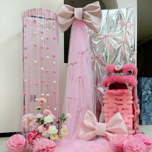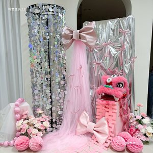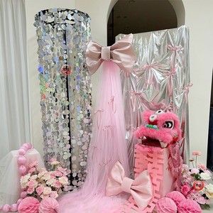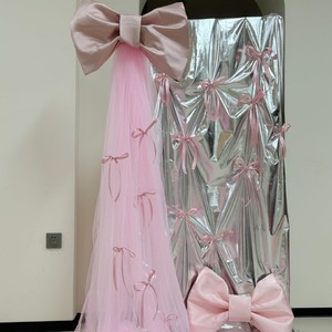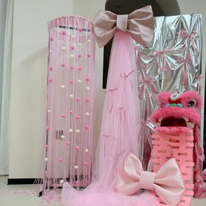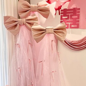 婚房布置结婚装饰男女方卧室婚礼粉色布幔纱幔醒狮蝴蝶结晨袍拍照