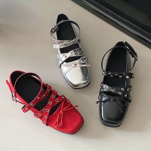 复古法式珍鞋蝴蝶结芭蕾舞鞋新款2025玛丽浅口单鞋平底女外穿银色