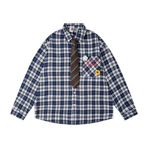 Broken Mirror 25秋季New美式复古字母图案宽松长袖衬衫